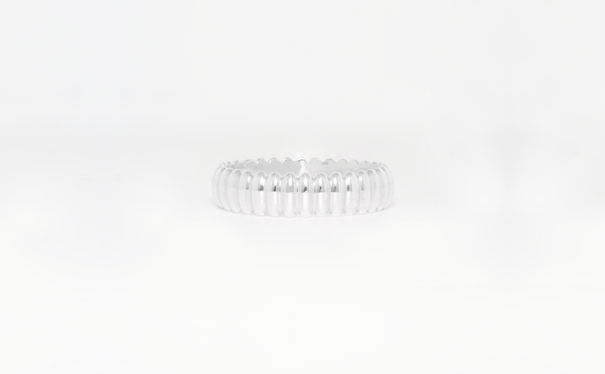 Elliptische Facetten umfliessen die Ringschiene nahtlos. Mit jeder Bewegung entstehen neue Reflexionen. Ein kontinuierliches Spiel aus hellen Glanzpunkten und sanftem Schimmer. Tragbar an jedem Finger. Markant genug, um solo zu wirken oder im Stack. Ein klares Statement innerhalb der Kollektion. Für sie und ihn geschaffen.