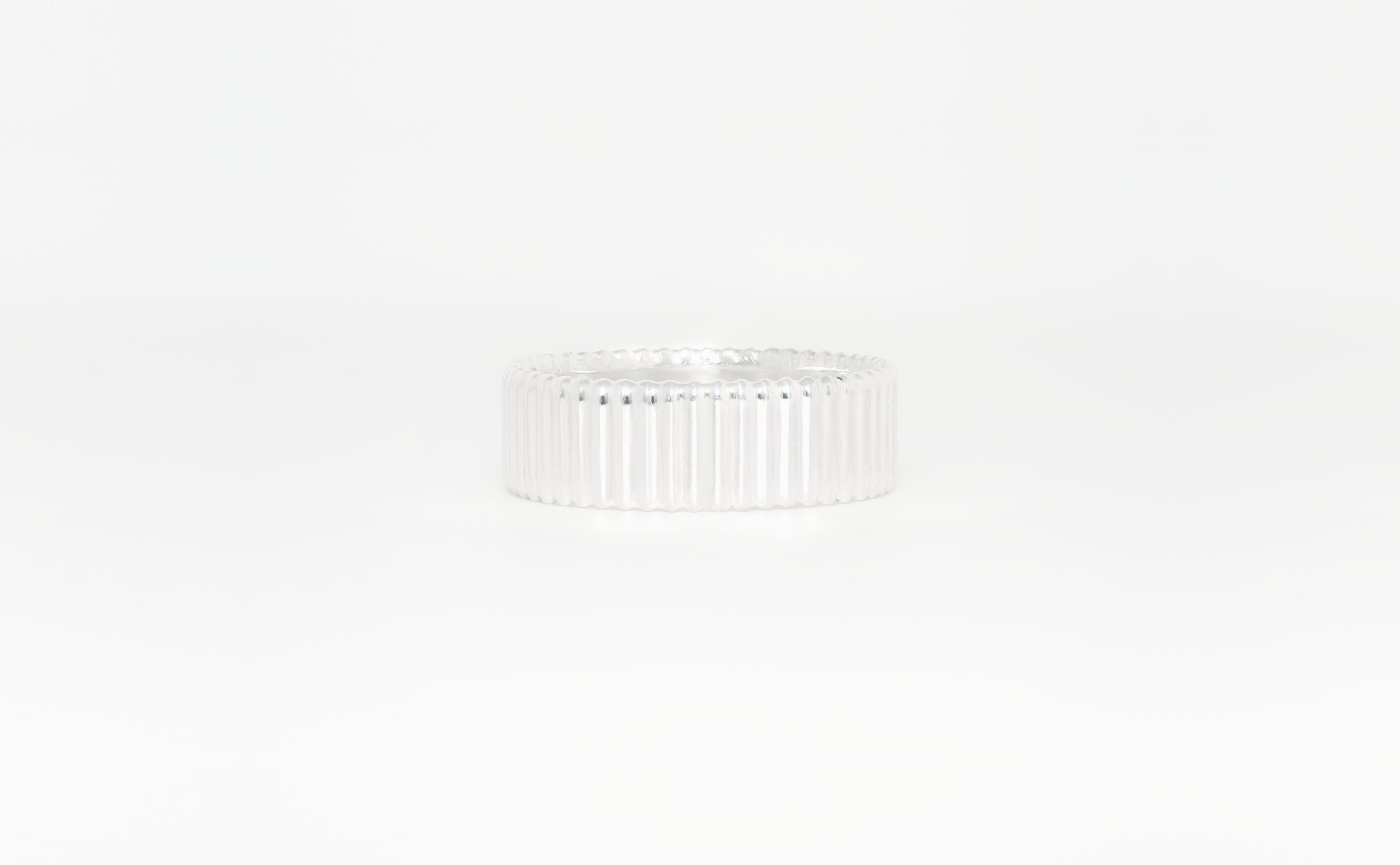 Präzise Balken erzeugen einen gleichmässigen optischen Rhythmus. Die Geometrie verstärkt die Lichtreflexion und erzeugt klare Highlights. Eine einheitliche Wandstärke sorgt für ein ausgewogenes, angenehmes Tragegefühl. Ein Design, aufgebaut auf struktureller Klarheit und perfektionierter Oberflächenwirkung, entwickelt für modernes Tragen. Für sie und ihn geschaffen.