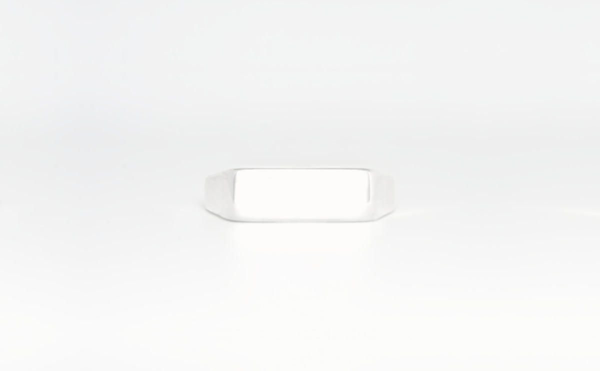 Der Ring zeichnet sich durch eine flache, quadratische Oberseite mit klaren, linearen Kanten aus. Die Geometrie geht in sanft zulaufende Formen entlang der Ringschiene über und hält das Volumen im Gleichgewicht. Polierte Flächen betonen die quadratische Silhouette und erzeugen ein gleichmässiges Reflexionsfeld. Ein klarer, moderner Siegelring mit definierter Form, minimalem Detail und starker Geometrie. Entworfen für ihn.