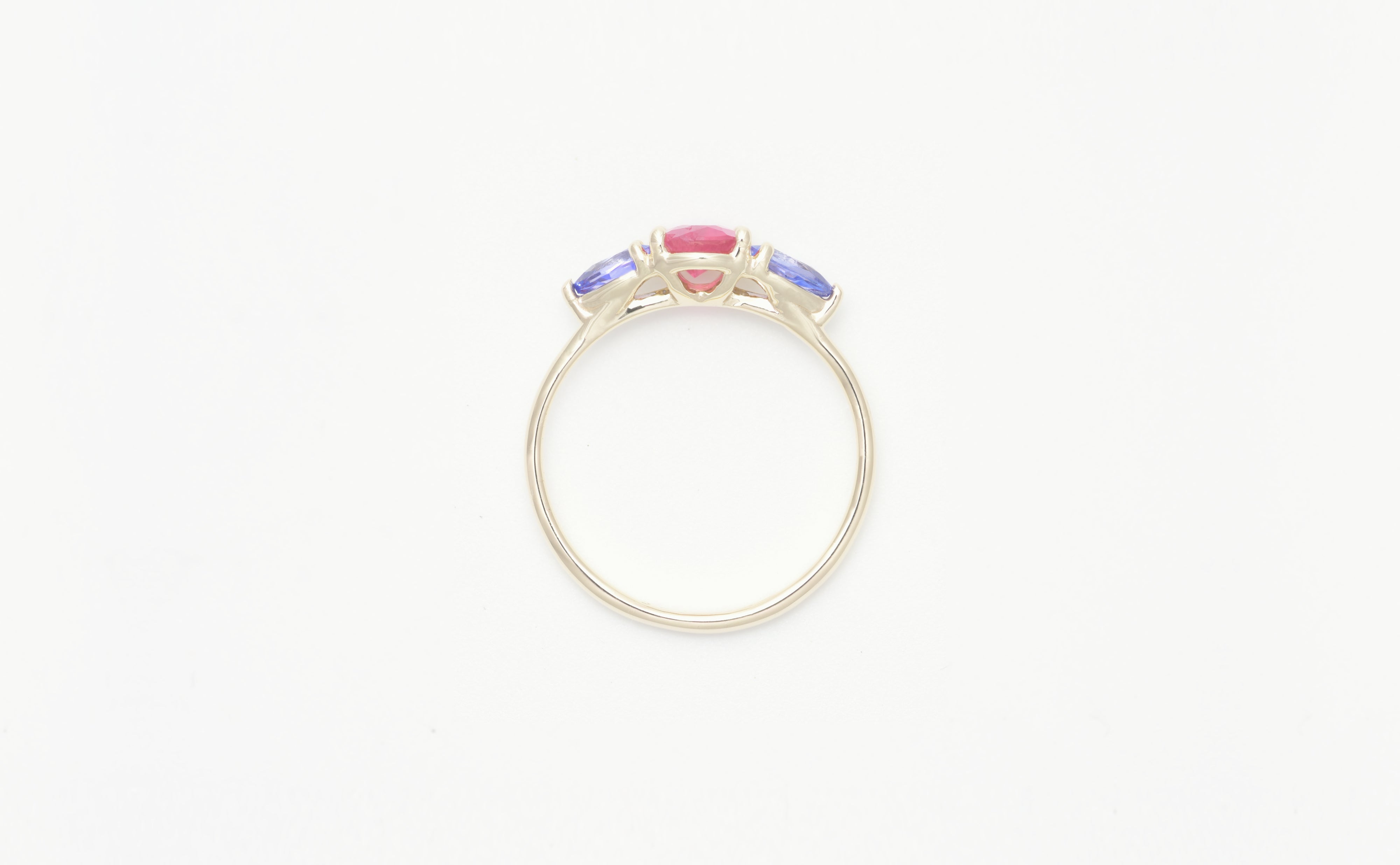 Eine Triologie-Komposition, aufgebaut auf einer klar definierten Mitte. Der Hauptstein setzt die Achse, während zwei kleinere Steine auf jeder Seite Balance schaffen. Die Ausrichtung bildet einen visuellen Anker, ohne die Kontinuität der Ringschiene zu unterbrechen. Fassungen und Positionen sind so angeordnet, dass die Proportionen harmonisch bleiben und die Silhouette kontrolliert wirkt. Ein Trilogie-Design mit präziser Verteilung von Fokus und Symmetrie. Entworfen für sie.